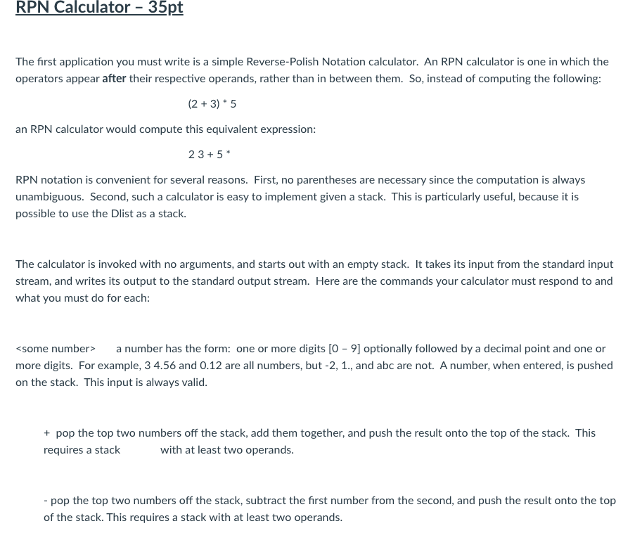 Rpn Calculator 35pt The First Application You Must Chegg Com