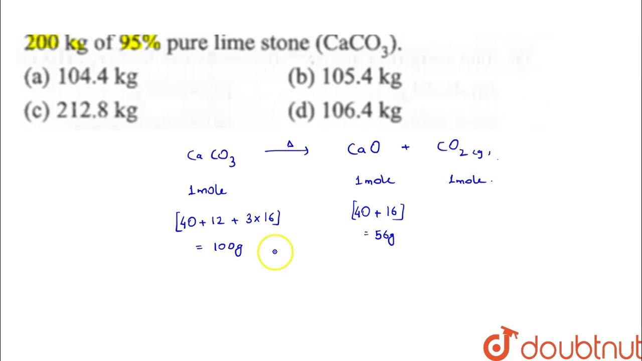 Calculate The Weight Of Lime Cao Obtained By Heating 200 Kg Of 95 Pure Lime Stone Caco 3 Youtube